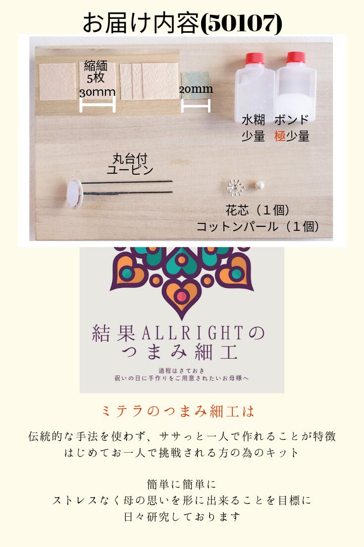 ミテラの「はじめてさんの材料」は、娘の祝いの日に「つまみ細工のお花を作りたいわ」と思われたお母様の為にご用意いたしました。