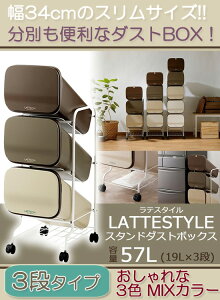 リス LATTE STYLE スタンドダストボックス ゴミ箱 MX 3P GLAT001 LATTE STYLE スタンドタイプ ゴミ箱 スリム 3分別 幅34cmのスリムサイズの縦型ダストボックス!冷蔵庫等の横に収まるスリム形状で、キッチンになじむおしゃれでシンプルなデザインの3分別ダストボックスです。