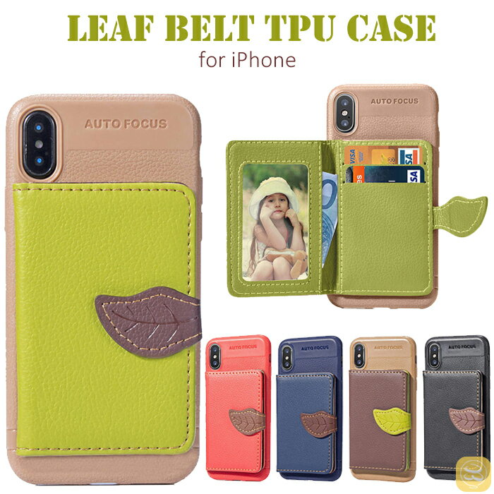 iPhone XS Max スマホケース iphoneXSマックス iphoneX カード収納付き 定期収納 カード入れ カバー アイフォンXS アイフォンテン 2トーンカラー 葉の形 葉っぱモチーフベルト オシャレ シンプル カワイイ キレイ 背面保護カバー 薄い 軽量 レディース メンズ