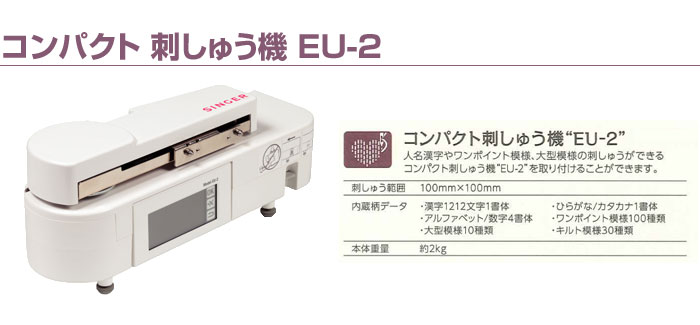 SINGER シンガー コンパクト 刺しゅう機 EU-2 刺繍機 EU2 文字刺しゅう ワンポイント刺しゅう 大型模様刺しゅう(代引き不可)【送料無料】